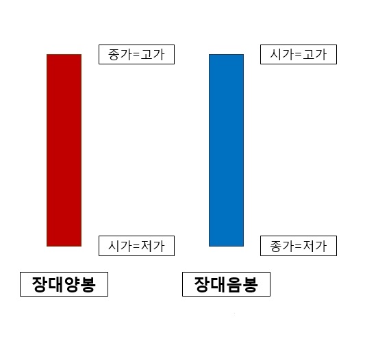 추가로 꼬리가 거의 없이 길게 형성된 양봉, 음봉을 장대양봉, 장대음봉이라고 한다.